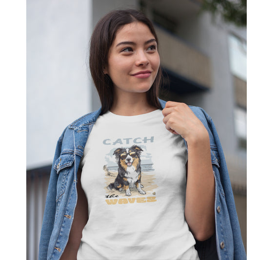 Australian Shepherd Unisex T-shirt (Beach) - Colour: White