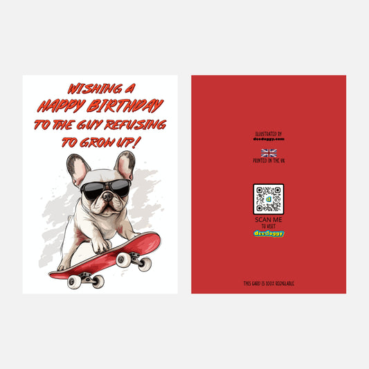 French Bulldog Unisex T-shirt (Born To SK8) - Colour: Heather Grey