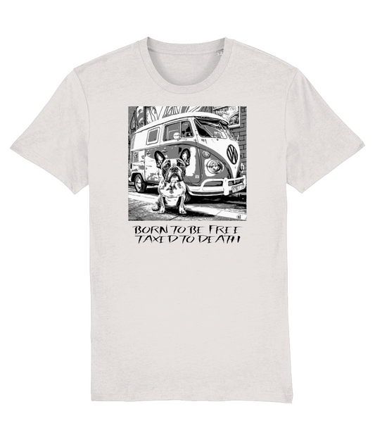 French Bulldog Unisex T-shirt (Camper Van) - Colour: Off White