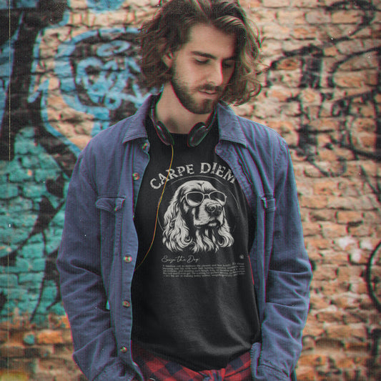 English Cocker Spaniel Unisex T-shirt (Carpe Diem)- Colour: Black