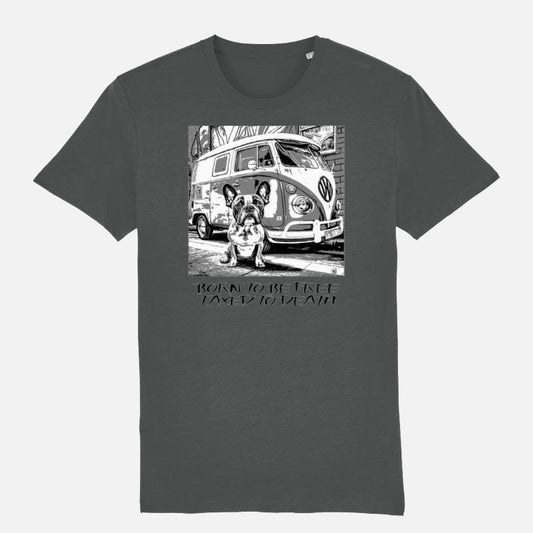 French Bulldog Unisex T-shirt (Camper Van) - Colour: Anthracite