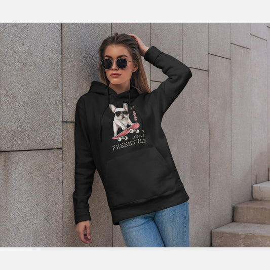 French Bulldog Unisex Hoodie (Skateboard) - Colour: Black