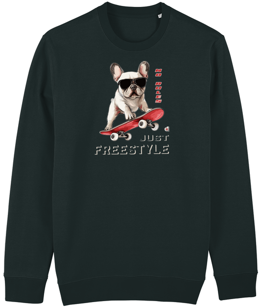 French Bulldog Unisex Sweatshirt (Skateboard) - Colour: Black