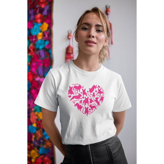 French Bulldog Unisex T-shirt (Pink Heart) - Colour: White