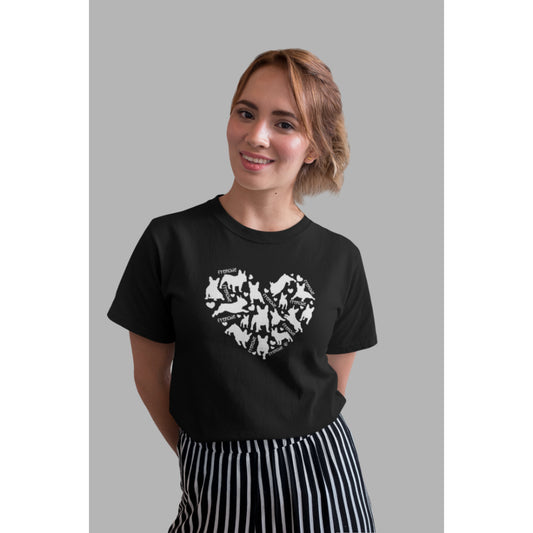 French Bulldog Unisex T-shirt (White Heart) - Colour: Black