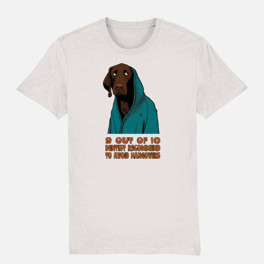 Chocolate Labrador Unisex T-shirt (Hangover) - Colour: Off White