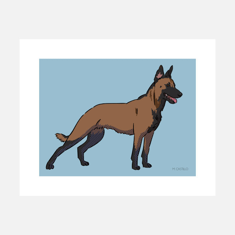 Bill Gates (who's a Shih Tzu and Poodle-mixes fan) wanted to have a personal computer on every desk. If we had our way, we would hang doggy art prints above all those desks to celebrate the unique bond between humans and man's best friend. Our Belgian Malinois dog art is vibrant like Spain, the native home of our cosmopolitan dog artist, Maria Castillo.