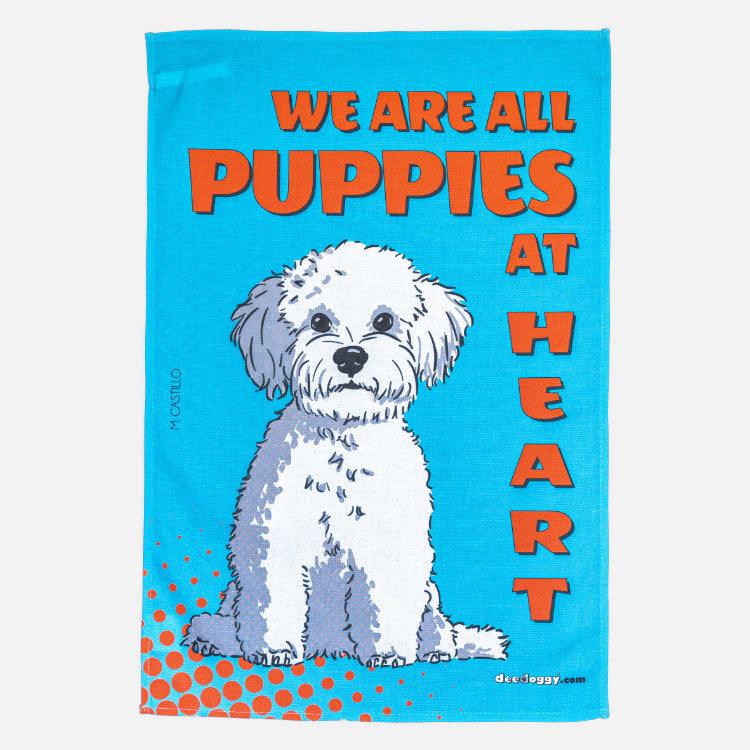 All are made of 230 grams per square meter of 100% cotton; our Bichon Frise gift tea towels are printed using the latest generation digital pigment printers for more vibrant colours of our dog art. Printing, sewing and hemming take place in North West England. They are approximately 45x68cm (17 x 26 inches) in size, and a hanging loop and the washing instructions are on the back. This Bichon Frise tea towel is a valuable and eager companion around the house. It covers, protects, and serves up what needs a cover, protection, or serving up.