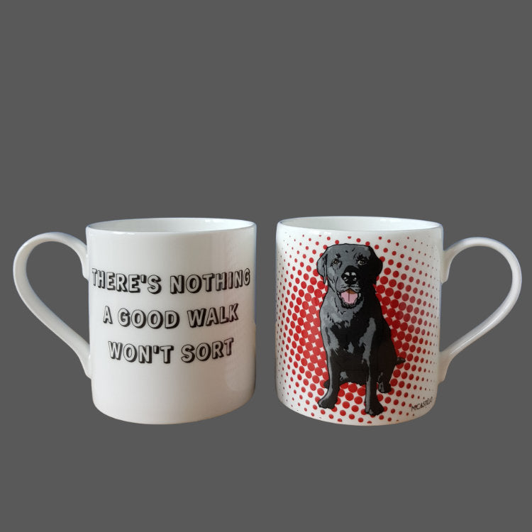 With a generous 350 ml capacity (89 mm height and 84 mm diameter) and luxury build quality, this fine bone china mug is the ideal gift for a dog-lover, tea drinker or coffee aficionado. Enjoy a delicate cuppa from this Black Labrador gift mug, and see the light shining through the crisp white wall of your cup whilst sippin’ on your favourite hot brew.