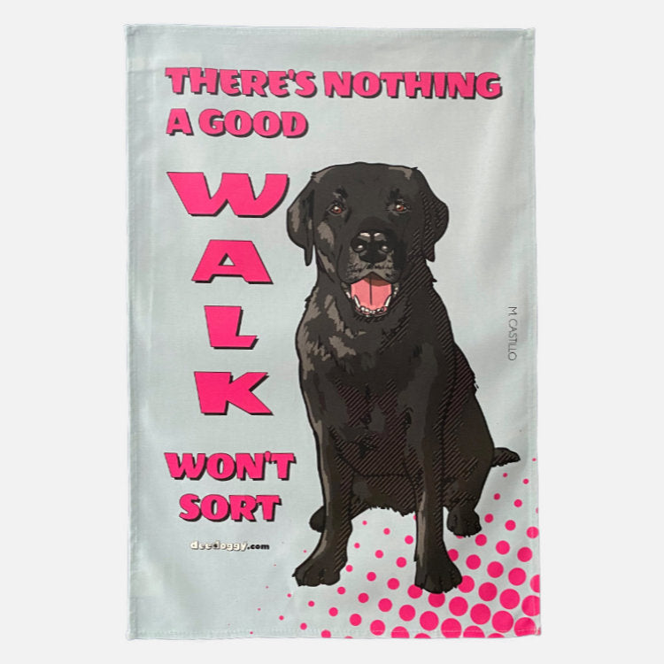 Dogs and kitchens. Should we allow dogs...? Should we not...? There is no such dilemma with our Black Labrador tea towels: they simply belong! They are vibrant like Spain, the native home of our cosmopolitan dog artist.