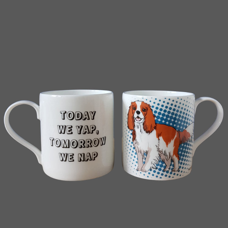 With a generous 350 ml capacity (89 mm height and 84 mm diameter) and luxury build quality, this fine bone china mug is the ideal gift for a dog-lover, tea drinker or coffee aficionado. Enjoy a delicate cuppa from this Cavalier King Charles Spaniel gift mug, and see the light shining through the crisp white wall of your cup whilst sippin’ on your favourite hot brew.