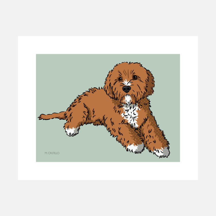 Bill Gates (who's a Shih Tzu and Poodle-mixes fan) wanted to have a personal computer on every desk. If we had our way, we would hang doggy art prints above all those desks to celebrate the unique bond between humans and man's best friend. Our Cavapoo dog art is vibrant like Spain, the native home of our cosmopolitan dog artist, Maria Castillo.