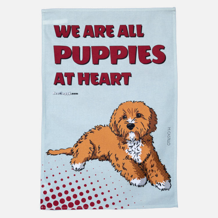 Dogs and kitchens. Should we allow dogs...? Should we not...? There is no such dilemma with our Cavapoo tea towels: they belong there! They are vibrant like Spain, the native home of our cosmopolitan dog artist.