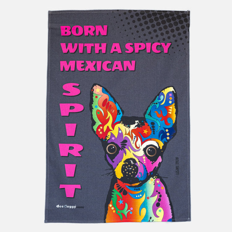 Are our tail-wagging, face-licking friends too messy for kitchens? There is no such dilemma with our Chihuahua gift tea towels: they belong there! Michael Tompsett's multi-coloured dog art creates a bright, fun focal point in any kitchen and social gathering. No mess, no wagging tail; this doggy stays where you lay or hang it.