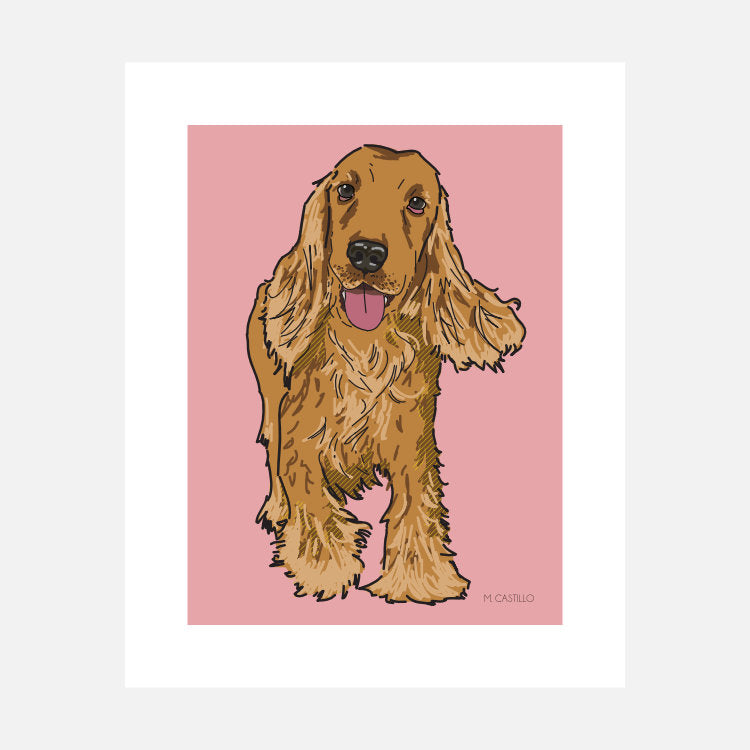 Bill Gates (a Shih Tzu and Poodle-mixes fan) wanted a personal computer on every desk. If we had our way, we would hang doggy art prints above all those desks to celebrate the unique bond between humans and man's best friend. Our Cocker Spaniel dog art is vibrant like Spain, the native home of our cosmopolitan dog artist, Maria Castillo.