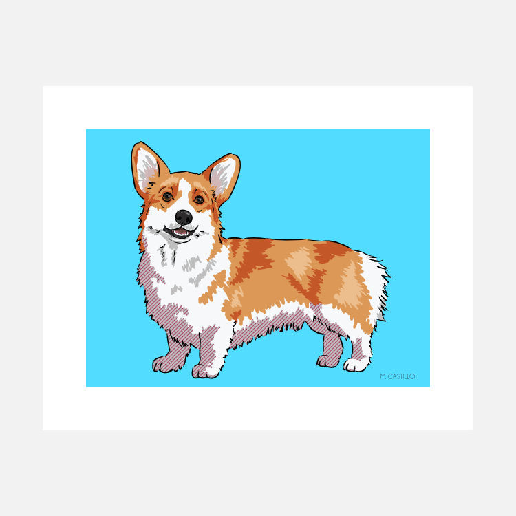 Bill Gates (who's a Shih Tzu and Poodle-mixes fan) wanted to have a personal computer on every desk. If we had our way, we would hang doggy art prints above all those desks to celebrate the unique bond between humans and man's best friend. Our Corgi dog art is vibrant like Spain, the native home of our cosmopolitan dog artist, Maria Castillo.