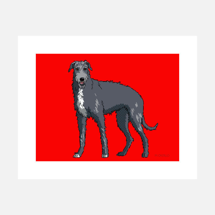 Bill Gates (who's a Shih Tzu and Poodle-mixes fan) wanted to have a personal computer on every desk. If we had our way, we would hang doggy art prints above all those desks to celebrate the unique bond between humans and man's best friend. Our Deerhound dog art is vibrant like Spain, the native home of our cosmopolitan dog artist, Maria Castillo.