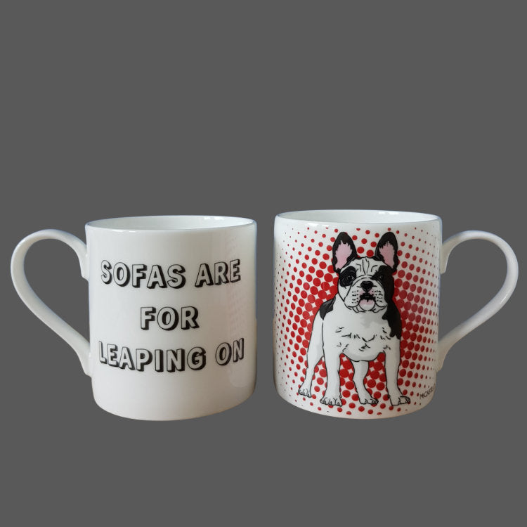 With a generous 350 ml capacity (89 mm height and 84 mm diameter) and luxury build quality, this fine bone china mug is the ideal gift for a dog-lover, tea drinker or coffee aficionado. Enjoy a delicate cuppa from this French Bulldog gift mug, and see the light shining through the crisp white wall of your cup whilst sippin’ on your favourite hot brew.