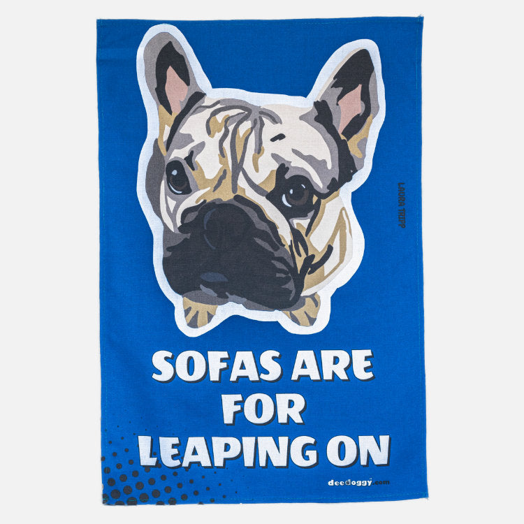 All are made of 230 grams per square meter of 100% cotton; our French Bulldog gift tea towels are printed using the latest generation digital pigment printers for more vibrant colours of our dog art. Printing, sewing and hemming take place in North West England. They are approximately 45x68cm (17 x 26 inches) in size, and a hanging loop and the washing instructions are on the back. This French Bulldog tea towel is a valuable and eager companion around the house. It covers, protects, and serves up what needs a cover, protection, or serving up.