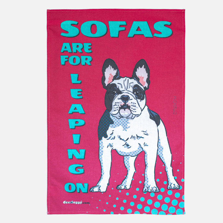 Dogs and kitchens. Should we allow dogs...? Should we not...? There is no such dilemma with our French Bulldog tea towels: they belong there! They are vibrant like Spain, the native home of our cosmopolitan dog artist.