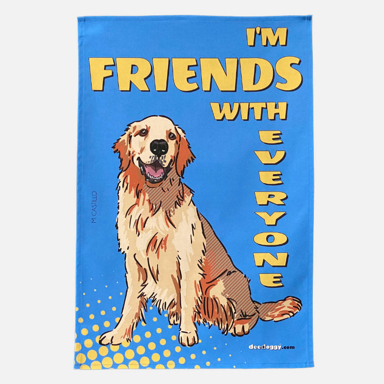 Dogs and kitchens. Should we allow dogs...? Should we not...? There is no such dilemma with our Golden Retriever tea towels: they belong there! They are vibrant like Spain, the native home of our cosmopolitan dog artist.