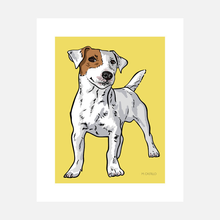 Bill Gates (a Shih Tzu and Poodle-mixes fan) wanted a personal computer on every desk. If we had our way, we would hang doggy art prints above all those desks to celebrate the unique bond between humans and man's best friend. Our Jack Russel Terrier dog art is vibrant like Spain, the native home of our cosmopolitan dog artist, Maria Castillo.