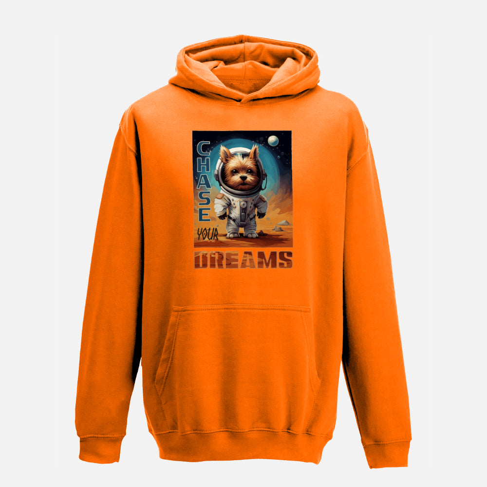 Kids' Cosmic Yorkshire Terrier Hoodie - Colour: Orange Crush