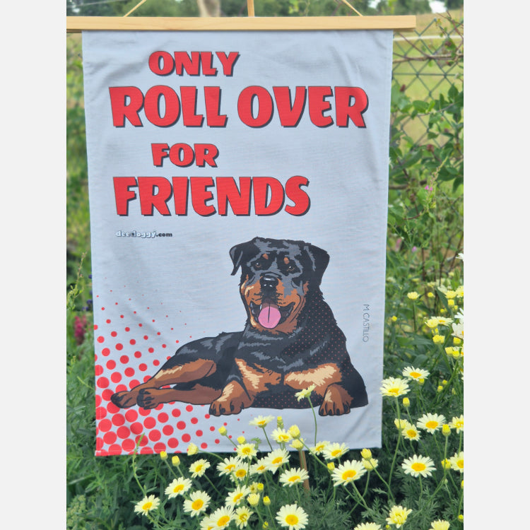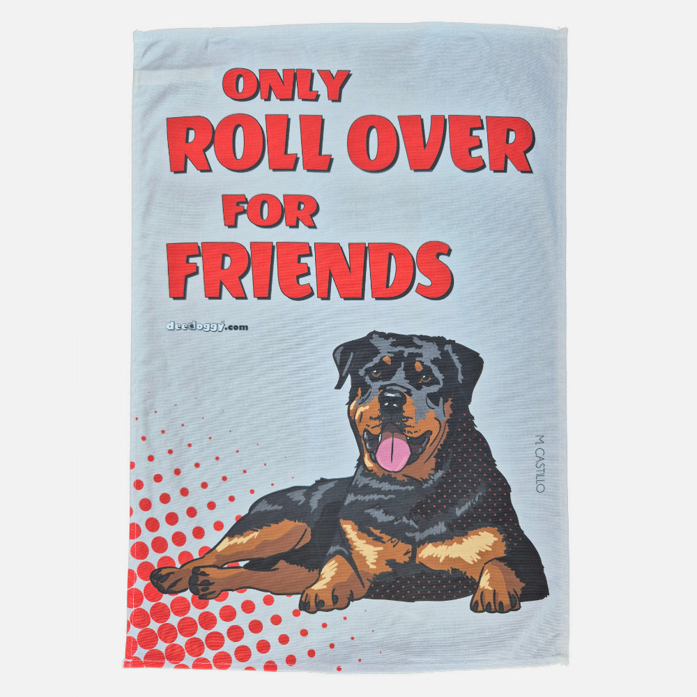 All are made of 230 grams per square meter of 100% cotton; our Rottweiler gift tea towels are printed using the latest generation digital pigment printers for more vibrant colours of our dog art. Printing, sewing and hemming take place in North West England. They are approximately 45x68cm (17 x 26 inches) in size, and a hanging loop and the washing instructions are on the back. This Rottweiler tea towel is a valuable and eager companion around the house. It covers, protects, and serves up what needs a cover, protection, or serving up.