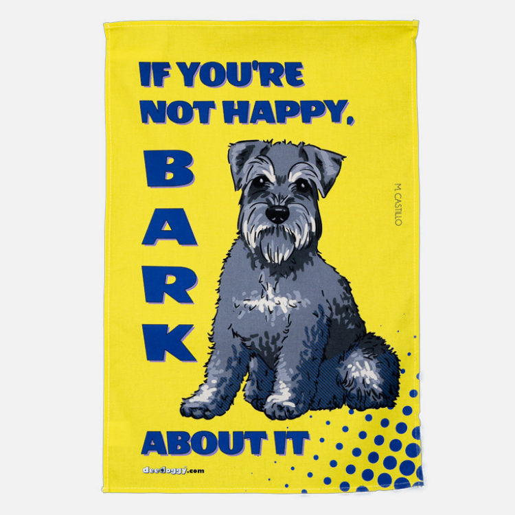 All are made of 230 grams per square meter of 100% cotton; our Schnauzer gift tea towels are printed using the latest generation digital pigment printers for more vibrant colours of our dog art. Printing, sewing and hemming take place in North West England. They are approximately 45x68cm (17 x 26 inches) in size, and a hanging loop and the washing instructions are on the back. This Schnauzer tea towel is a valuable and eager companion around the house. It covers, protects, and serves up what needs a cover, protection, or serving up.