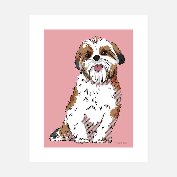 Bill Gates (a Shih Tzu and Poodle-mixes fan) wanted a personal computer on every desk. If we had our way, we would hang doggy art prints above all those desks to celebrate the unique bond between humans and man's best friend. Our Shih Tzu dog art is vibrant like Spain, the native home of our cosmopolitan dog artist, Maria Castillo.