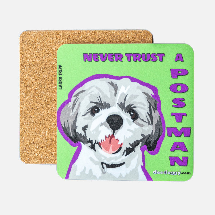 ”Dogs are man’s best friend”. Our Shih Tzu coaster is the best friend of mugs, glasses, and bottles of cold and hot drinks and it is the perfect underdog: never whines about the spills, lays quietly and happy under the feet of glasses. The art of this doggy coaster is from Salt Lake City, Utaaahhh. And ”aaahhh! and wow!” are the most common reactions to the creations of our dog artist, Laura Tripp. 10 cm x 10 cm x 5 mm and made from laminated cork and hardboard panels, manufactured and digitally printed in Britain. The base material of all our doggy gift coasters is an eco-friendly, renewable material derived from the bark of the cork oak tree and recycled paper. This Shih Tzu gift coaster is perfect for underpinning any beverage 'container', in front of the telly or on the terrace watching a doggy friend messing in the garden.