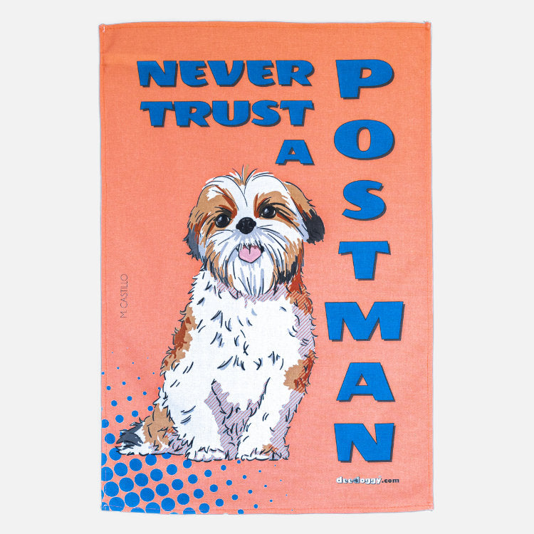 All are made of 230 grams per square meter of 100% cotton; our Shih Tzu gift tea towels are printed using the latest generation digital pigment printers for more vibrant colours of our dog art. Printing, sewing and hemming take place in North West England. They are approximately 45x68cm (17 x 26 inches) in size, and a hanging loop and the washing instructions are on the back. This Shih Tzu tea towel is a valuable and eager companion around the house. It covers, protects, and serves up what needs a cover, protection, or serving up.