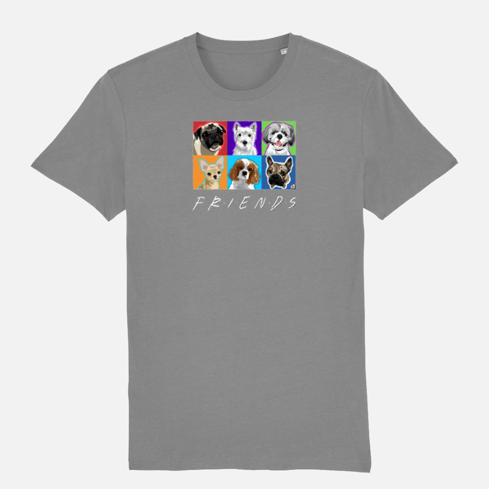 Say hello to our 'FRIENDS' doggy T-shirt – where six canine pals gather to steal the show (remind you of a famous sixsome?). In vibrant dog art, each pooch has a personality as distinct as their tales, lovingly depicted on a canvas of comfy organic cotton. It's a gathering of fab furry favourites.