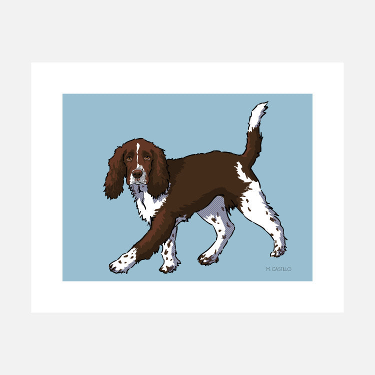 Bill Gates (a Shih Tzu and Poodle-mixes fan) wanted a personal computer on every desk. If we had our way, we would hang doggy art prints above all those desks to celebrate the unique bond between humans and man's best friend. Our Springer Spaniel dog art is vibrant like Spain, the native home of our cosmopolitan dog artist, Maria Castillo.