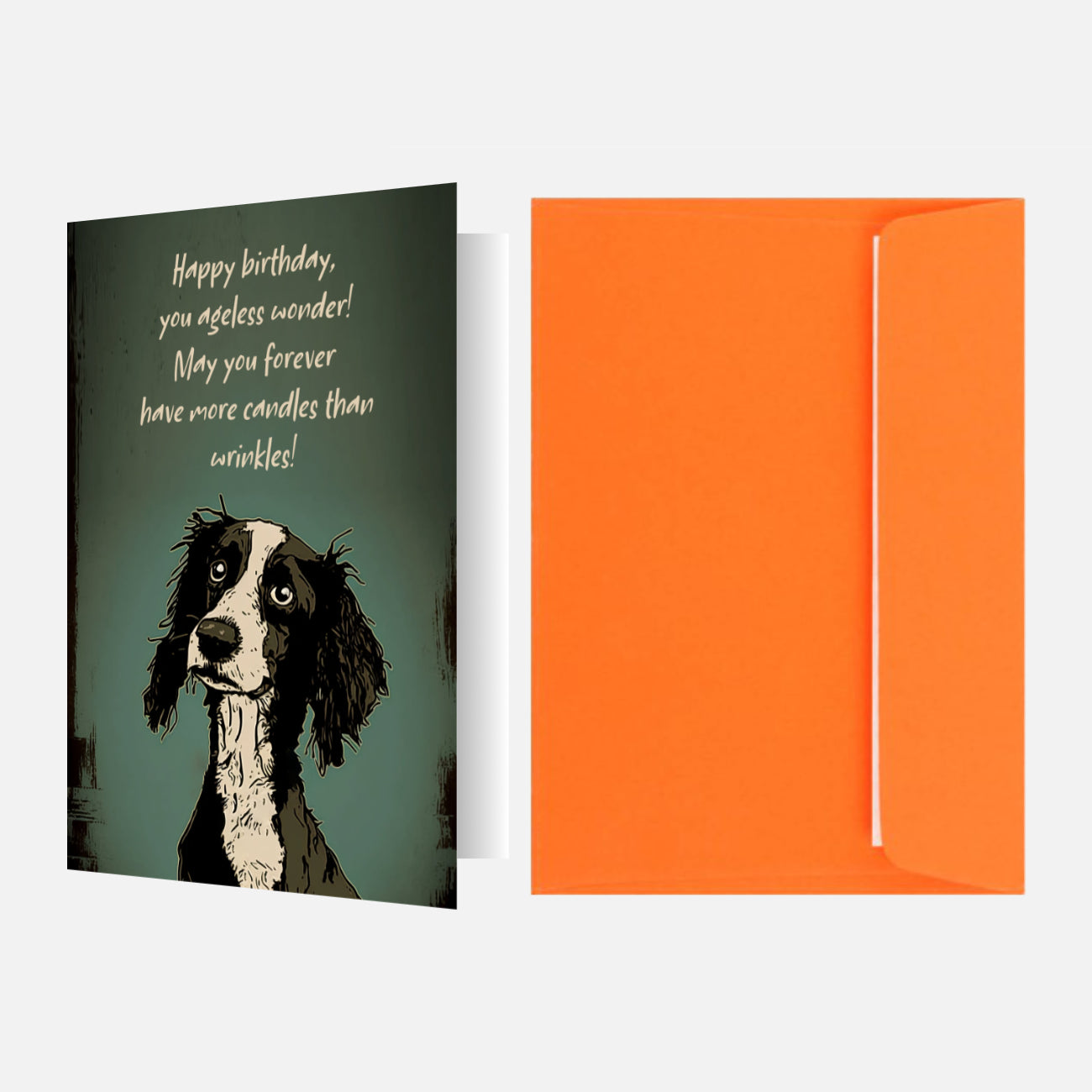 Check out our quirky Springer Spaniel birthday card! Featuring this versatile dog breed, synonymous with energy and bouncing. If an energy drink was a dog, the Springer Spaniel would spring to mind.