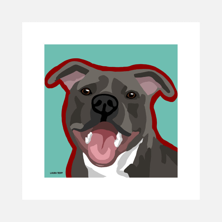 In 2018, the New York based research company SmartAsset named Salt Lake City... no, not the city of Mormons, but the best place in America for creative people to live. And our Staffordshire Terrier dog art is as vibrant as the prolific creative scene of Salt Lake City, which is also the home of our dog artist, Laura Tripp.