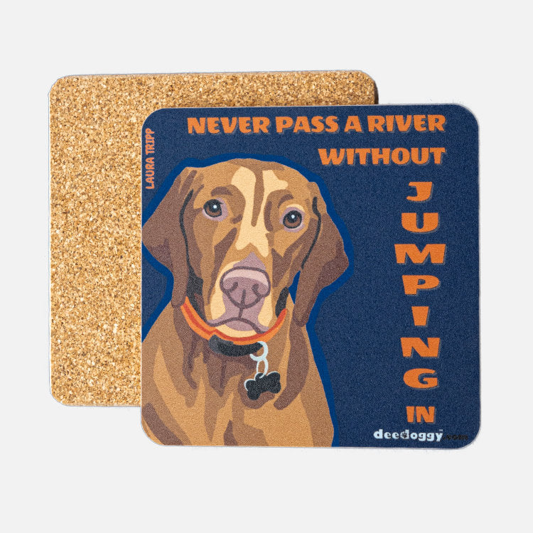 ”Dogs are man’s best friend”. Our Vizsla coaster is the best friend of mugs, glasses, and bottles of cold and hot drinks and it is the perfect underdog: never whines about the spills, lays quietly and happy under the feet of glasses. The art of this doggy coaster is from Salt Lake City, Utaaahhh. And ”aaahhh! and wow!” are the most common reactions to the creations of our dog artist, Laura Tripp. 10 cm x 10 cm x 5 mm and made from laminated cork and hardboard panels, manufactured and digitally printed in Britain. The base material of all our doggy gift coasters is an eco-friendly, renewable material derived from the bark of the cork oak tree and recycled paper. This Vizsla gift coaster is perfect for underpinning any beverage 'container', in front of the telly or on the terrace watching a doggy friend messing in the garden.