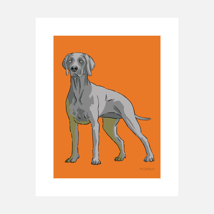 Bill Gates (a Shih Tzu and Poodle-mixes fan) wanted a personal computer on every desk. If we had our way, we would hang doggy art prints above all those desks to celebrate the unique bond between humans and man's best friend. Our Weimaraner dog art is vibrant like Spain, the native home of our cosmopolitan dog artist, Maria Castillo.